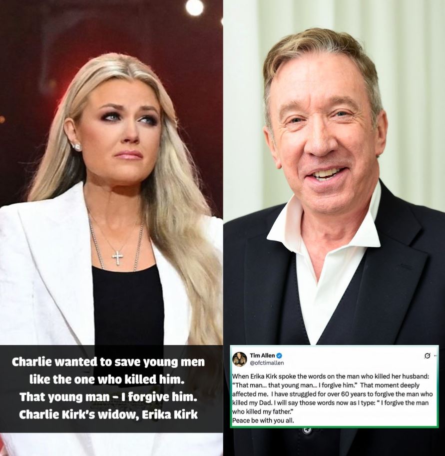 In a deeply personal revelation, actor Tim Allen has publicly forgiven the man who killed his father over six decades ago. This transformative moment was inspired by a powerful speech from Erika Kirk, widow of conservative activist Charlie Kirk, who forgave her husband’s alleged killer during his memorial service.