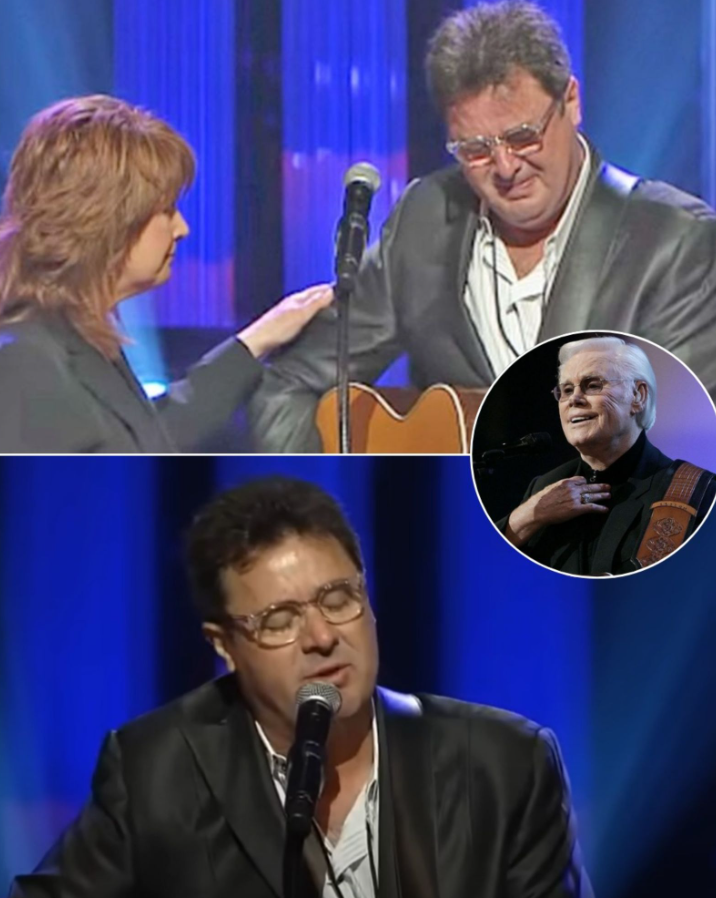 As Vince Gill stepped onto the stage to perform his haunting ballad, there was a palpable sense of reverence and mourning in the air. The usually composed and stoic singer found himself overcome by emotion within moments of beginning the song. His voice, normally strong and steady, wavered as tears streamed down his face. Every note resonated with the sorrow of losing a mentor, a friend, and a monumental figure in country music. This performance was a rare glimpse of vulnerability from Vince Gill, revealing the depth of his connection to George Jones.